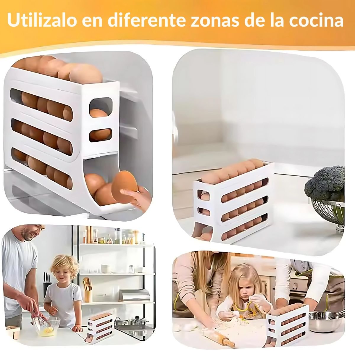 | Valorado por: | Ahorra espacio en el refrigerador, Ideal para huevos de campos, Todo en un solo lugar |